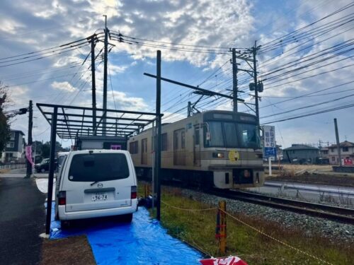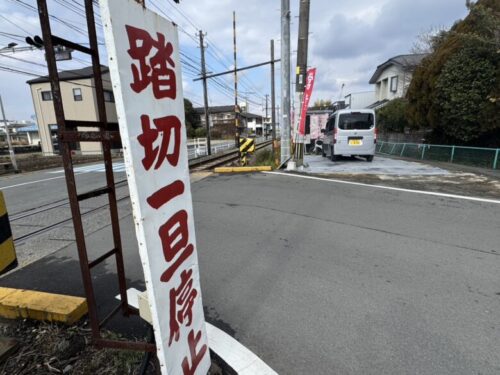 踏切のすぐ脇にあるので、車の方は十分に注意して行ってくださいね、事故多発箇所なので。