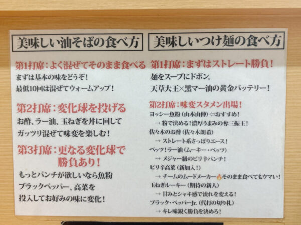 ユニークな野球ネタが豊富に投入されている「油そば&つけ麺 LAけんちゃん」。