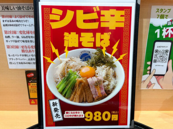 お次は、新商品のシビ辛油そば。