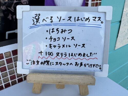 こちらはバナナワッフル。(300円)さくふわのワッフルの上にクリームとバナナ、そしてチョコレートソースがかかっております。