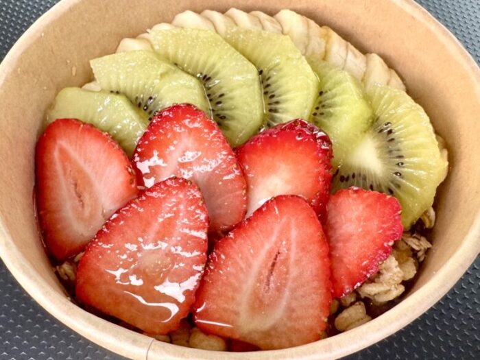 で、そのスーパーフードのアサイーをアイス状にしてにグラノーラや果物をたっぷり乗せて栄養満点にして朝食やデザートに食べるようにしたものがアサイーボウルなんです。
