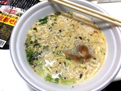 鶏ガラスープの本格的なカップ麺というのが珍しく、本物に負けないくらいの試行錯誤の努力の跡があり、純粋にレベルの高い美味しいカップラーメンでした。