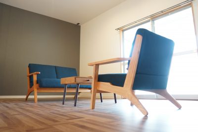 うふふ!!今ですか!?GINNANSTYLEの山下です!ここの家具のトータルコーディネートをしてるんです