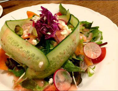 乗っているカッテージチーズもとても美味しく数種類の野菜にチーズにと、お家じゃなかなかできないサラダです。