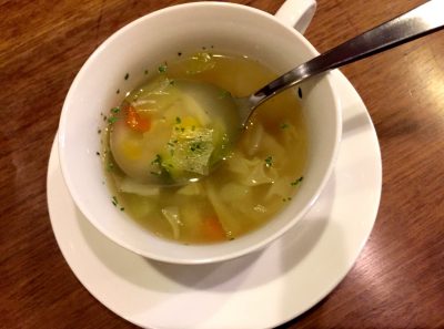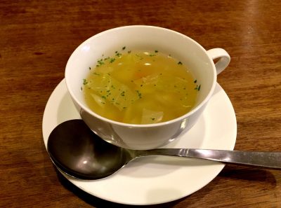 新鮮なお野菜が美味しく調度良い濃さのコンソメスープです。料理全体を考えたバランスの良い味です。