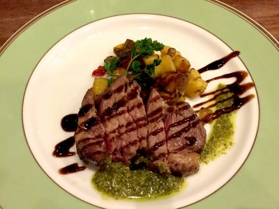 2種類のソースが楽しめて付け合わせのジャガイモなどのお野菜のソテーも口の中で味を変えれて満足です。