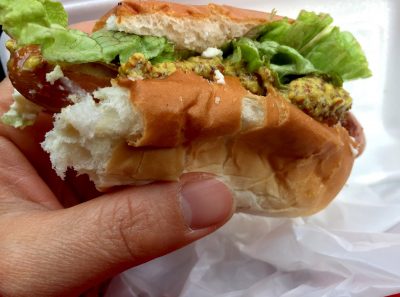 パンもフワフワで温かく作業しながらワンハンドで楽しめる美味しいドッグでした!