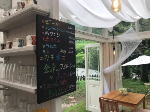 店内に入ると山に向かって、カフェスペースのテラスがあります。