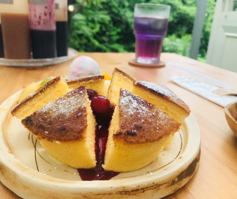 自然に浸かってパンケーキを食す