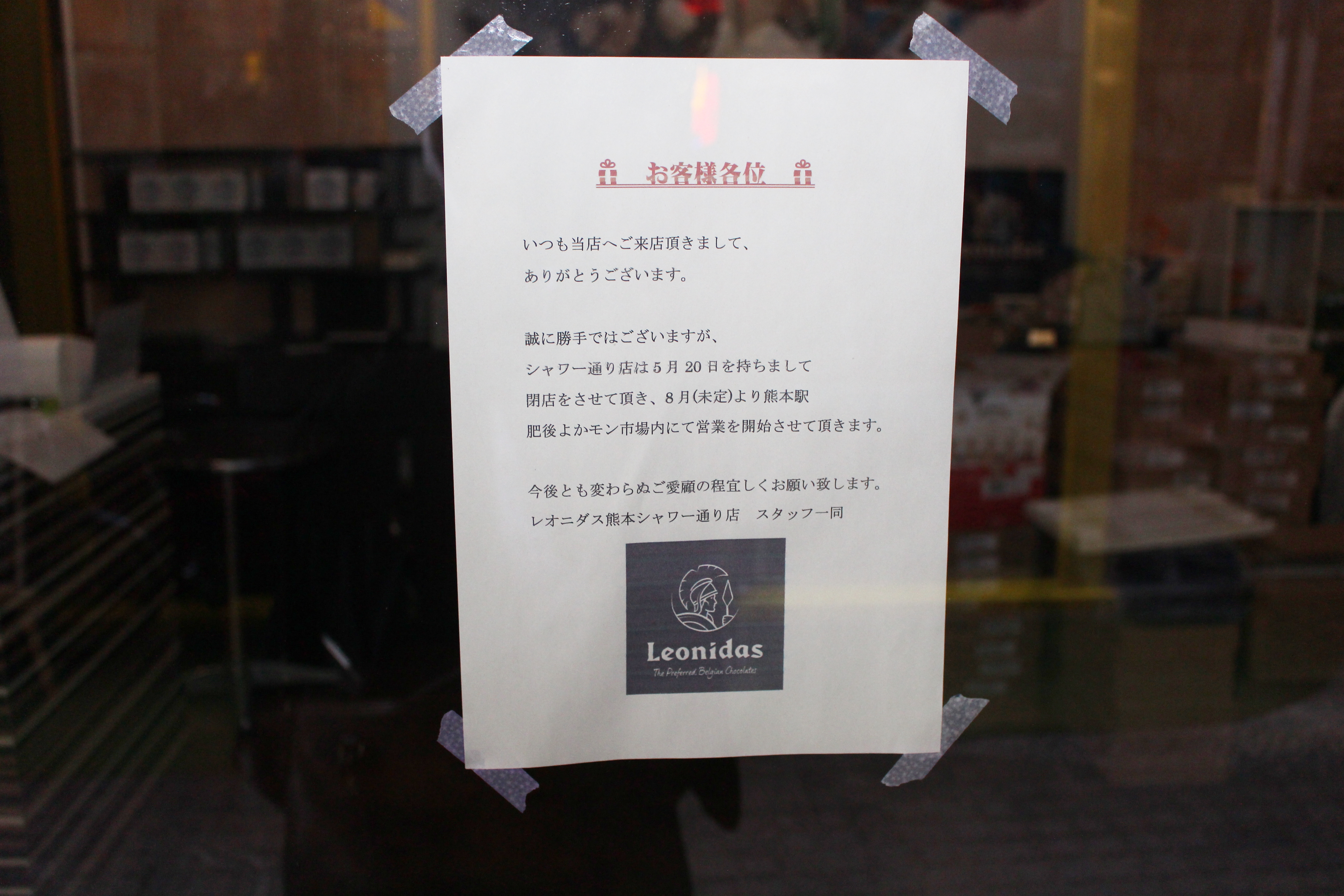 このレオニダス熊本シャワー通り店が、実は5月20日で営業を終了していました。