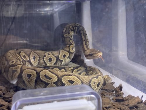 「Rep Amber」代表の北口さんが「ボールパイソン」(ニシキヘビ)片手に現れます。