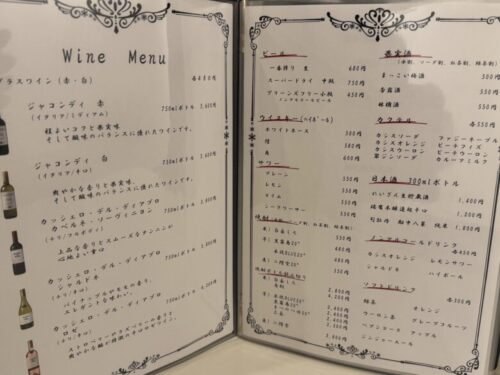 メニュー表を開くとドリンクメニューはありました。