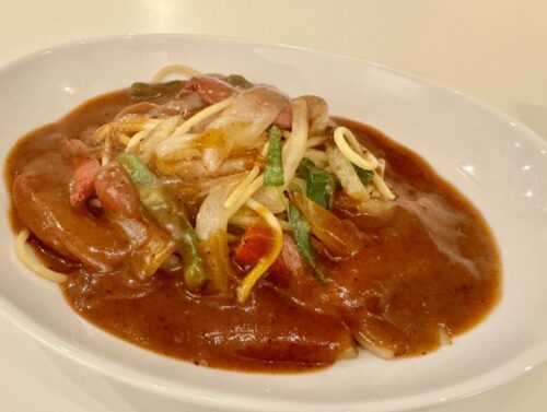 おお!イタリアンっぽい料理出てきた。洋風あんかけパスタです。