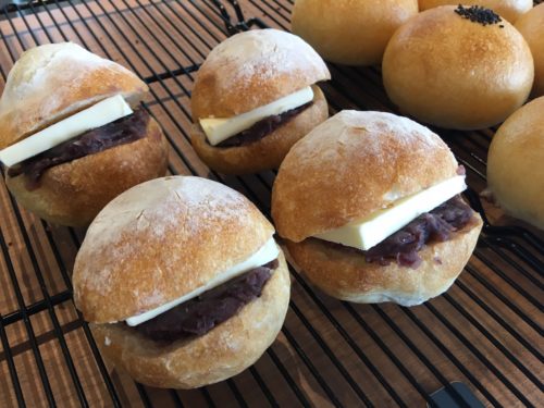 丸くてかわいいフランスパンに、分厚いバターとたっぷりのあんこ。生地のもっちりふんわり感と、甘さとしょっぱさが絶妙に調和しており、これまたおいしい!