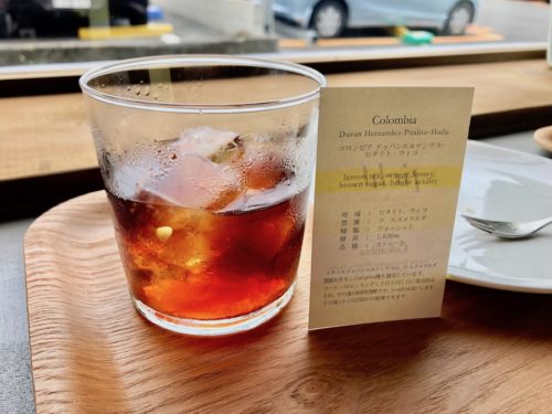 こんな素敵な空間でいただけるのは、スタッフの方が丁寧に淹れたコーヒー。今回は夏季限定水出しコーヒー(税込480円)を注文してみました。