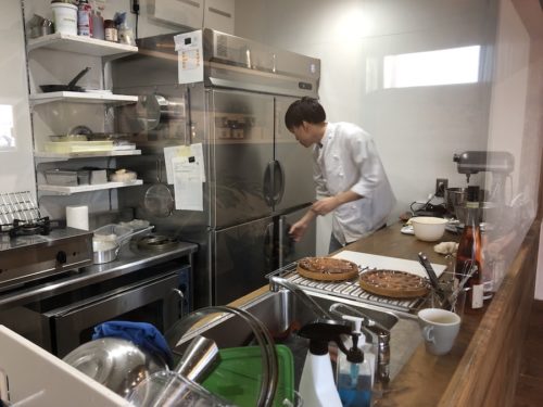 こちらのお菓子は、専属のパティシエさんが店内で作っています。入り口を開けると、すぐガラス張りの厨房が見えるので、注文を待つ間見てみるのも面白いかもしれません。