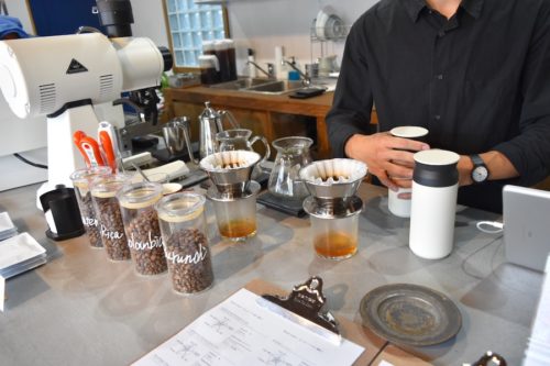 コーヒーは、カウンター横で試飲ができるサービスも。「5種類すべて飲んで良いですよ〜」ということなので、お気に入りの1杯が見つかるはず。色んな味を試したい人には嬉しい。