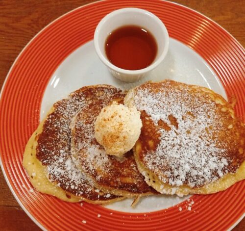 ホットケーキやスフレ系パンケーキとはまた違った味わいで、しかもお腹にたまります。