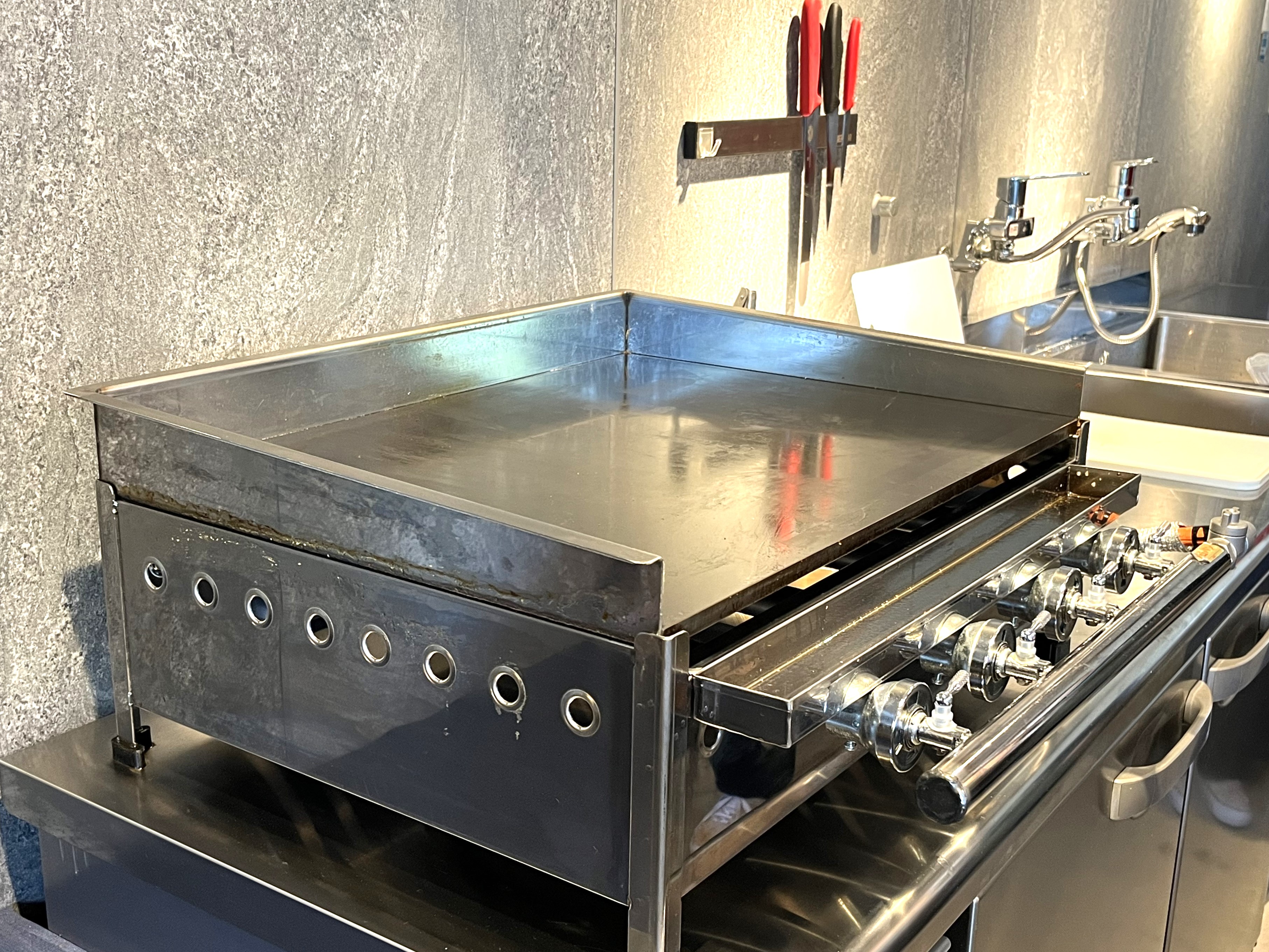 フードを注文すると、大きな鉄板でジュージューと熊本県産りんどうポークの自家製ベーコンを焼いてくれます。カフェ内にいい香りが漂ってきます。至福の時間。