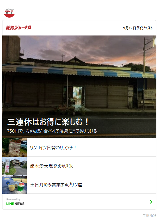 一昨年くらいから毎週金曜、話題の記事などをまとめてドン!と配信するLINEダイジェストをしております。