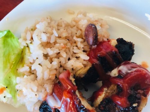 鶏はカリカリに焼けており、ご飯はほんのりココナッツ。
