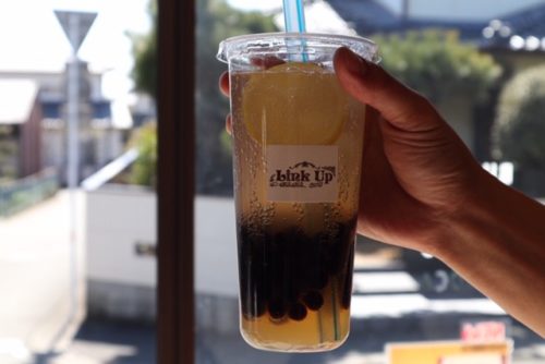 飲み物も充実。レモンスカッシュタピオカ。でかい!男性が持ってもこのサイズ!
