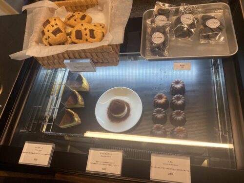 一方ショーケースには、本店で作られている自慢のお菓子が並びます。