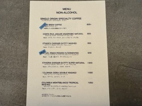 こちらは珈琲。こだわりのスペシャリティコーヒーで、どんな味が好みかをお伝えするとスタッフの方が丁寧に選んでくださいます。+100円でカフェオレに出来、+150円でオーツミルクか豆乳にも変更できます。