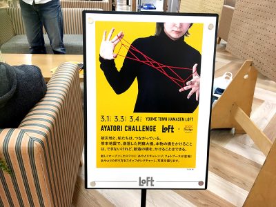 ブルーシートバックの販売などで有名な「ブリッジ熊本」さんが、昨年4月に東京と熊本でおこなった「あやとりチャレンジ」というイベントがオープンから3日間限定で開催されていました!