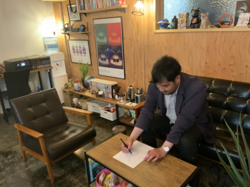 いつも隣に座っている肥後ジャーナル編集部のムトー宛に書きました。