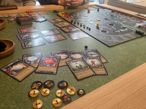 実はこのゲーム、我々もお店の方も遊んだことがなかったのですが、ご飯を食べたり1本目のゲームで遊んでいる間に店員さんがルールブックを読み込んで我々にルール説明をしてくださいました。「遊んだことがないけれど良いゲームだと評判を聞いたことがある」「箱が気になる」というルールを知らないゲームでも店員さんがルールを説明してくださるのはボードゲームカフェの大きい利点ですね!