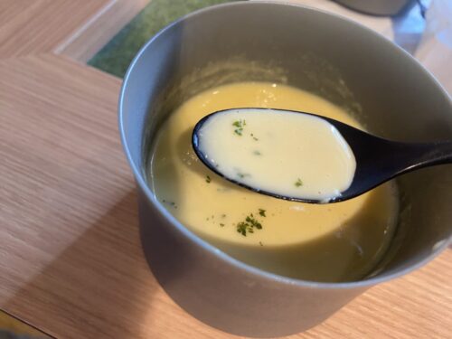 優しい甘さのコーンスープもしっかりトウモロコシの味を感じることができました。