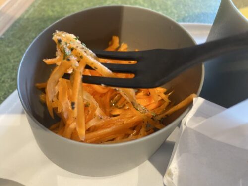 箸休めに嬉しいキャロットラペ。シャキシャキした触感で酸味のあるドレッシングとのバランスがグッド。