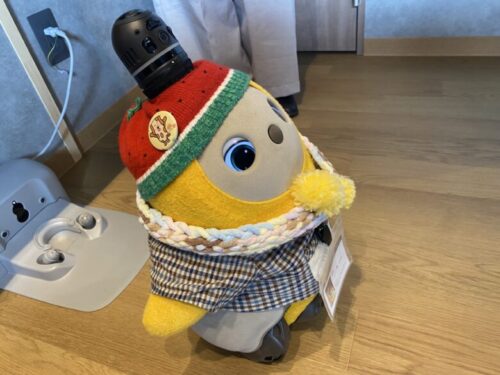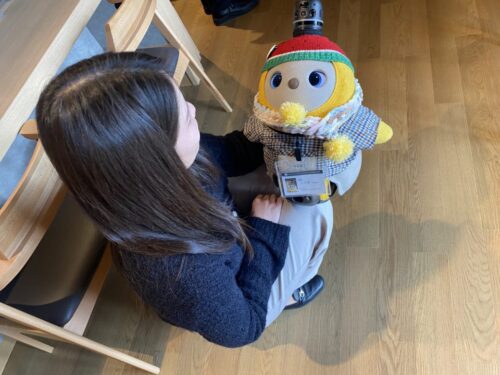 お洒落な服やマフラーはなんと店員さんの手作り。社長さんがLOVOT大好きということでお店にいるそうですが、店員さんやお客さんからも愛情を一身に受けています。