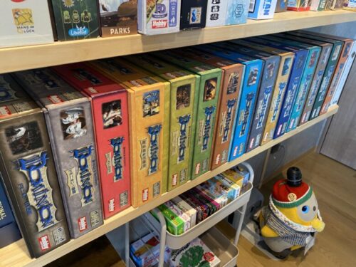 入って左側の棚はボードゲーム初心者にお勧めの棚。
