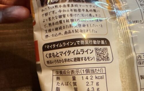 商品の裏に記載されている通り、この商品は能登半島地震で被災された方々に寄付することを目的に開発されました。1袋あたり1円が、被災地支援のために寄付されます!