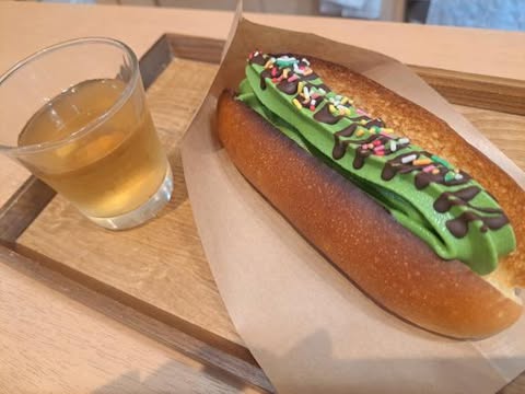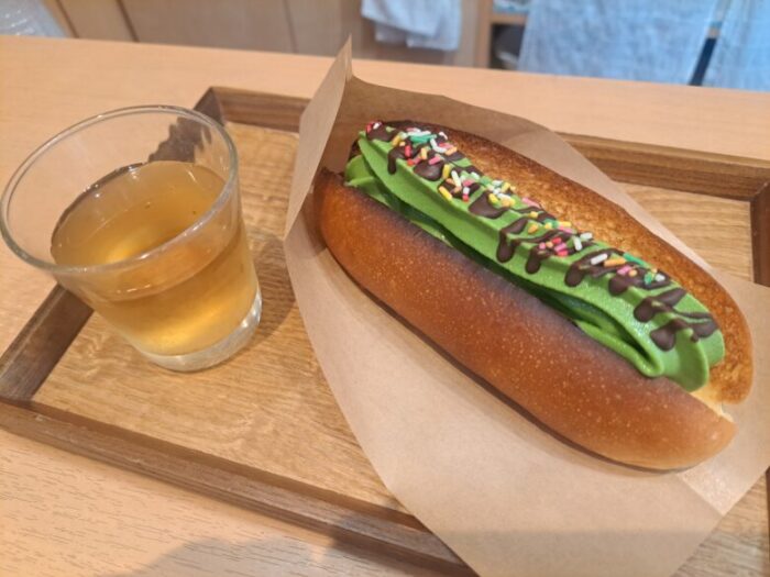 温かいパンと冷たい抹茶ソフトクリームなんです!