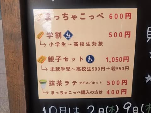 まっちゃこっぺの値段は本来600円なのですが、学割、親子セットなどのお得な割引もあります。