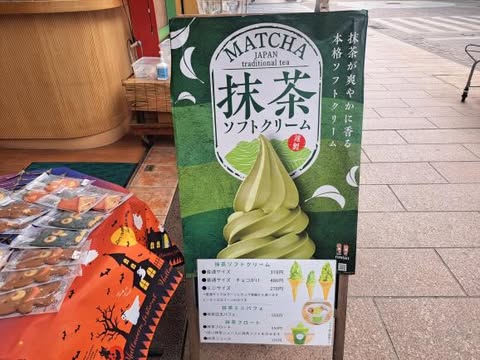 このソフトクリームは熊本県産の抹茶を使用しています。