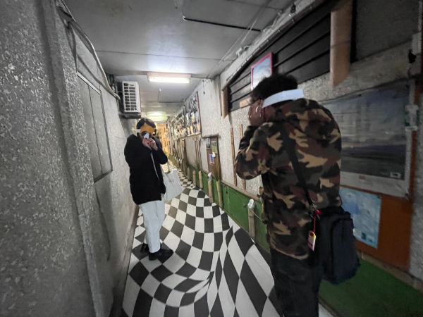 始めは慣れないトリックアートと緊張でぎこちなさが見られます。しかし、ここは出会いの場!逆境を乗り越えつつコミュニケーションを図っていました!