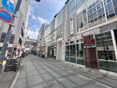 市役所の方向からだど、餃子屋 弐ノ弐のある通りにあります。