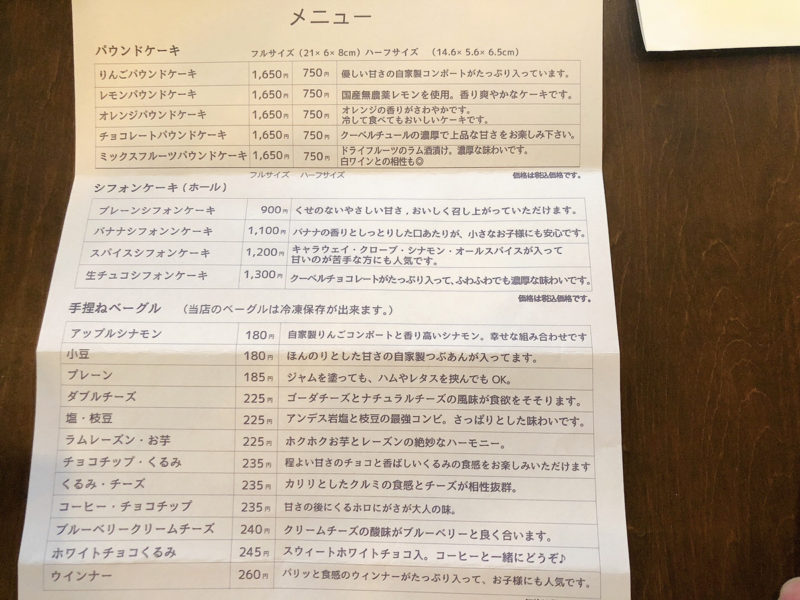 パウンドケーキ、シフォンケーキ、手捏ねベーグルはすべて予約注文可能だそうです!