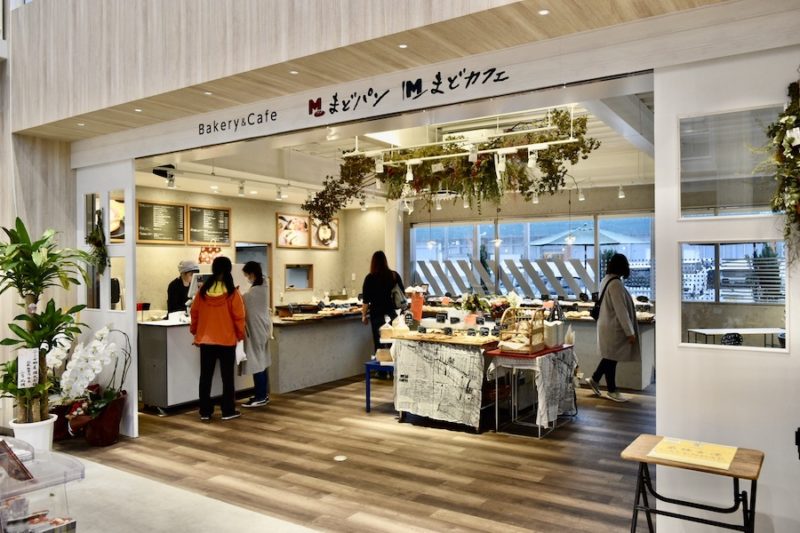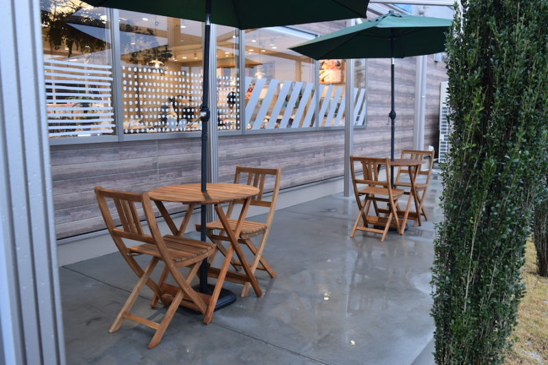 「まどパン」は、他にも江津本店と西熊本店がありますが、DESAKI嘉島店にはカフェスペースが用意されています。取材日は生憎の雨でしたが、テラス席もあります。買ったパンはここで食べられますし、バルミューダ社の高級トースターも置いてあるので温めたパンを食べることもできますよ。