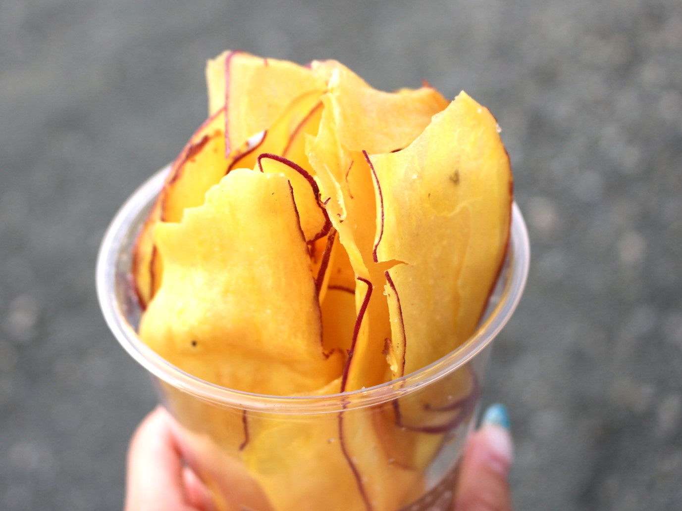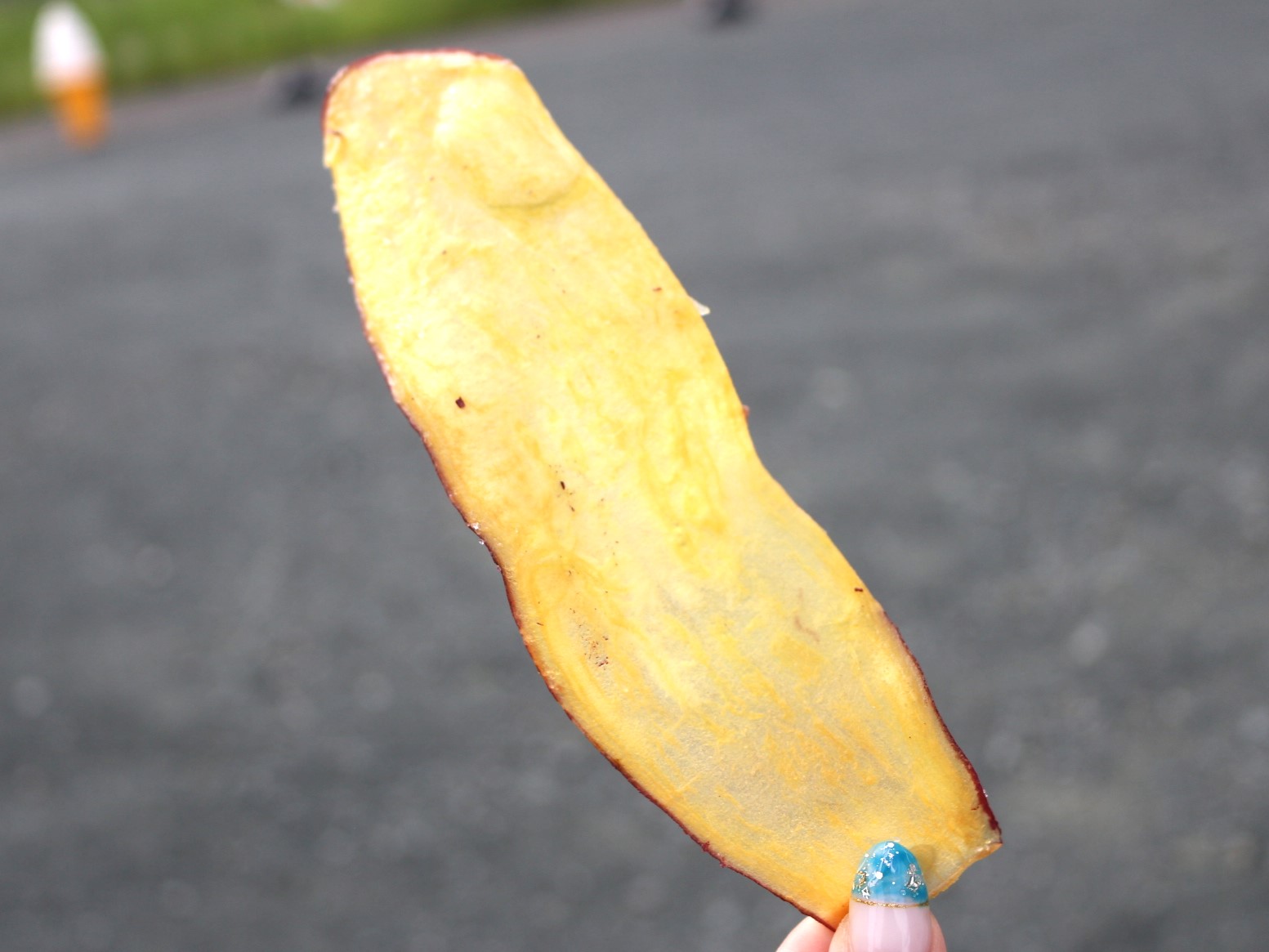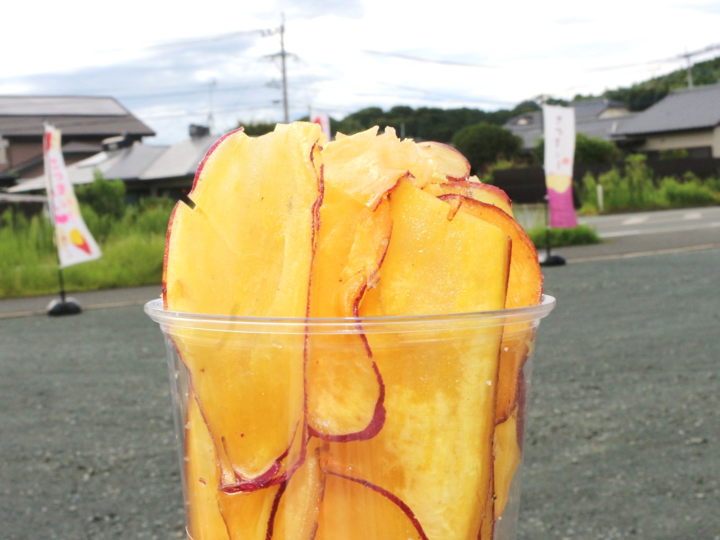 横から見るとこんな感じです。さつまいもがそのままチップスになっていて自然な形。この不揃い感もなんだか良いですね。