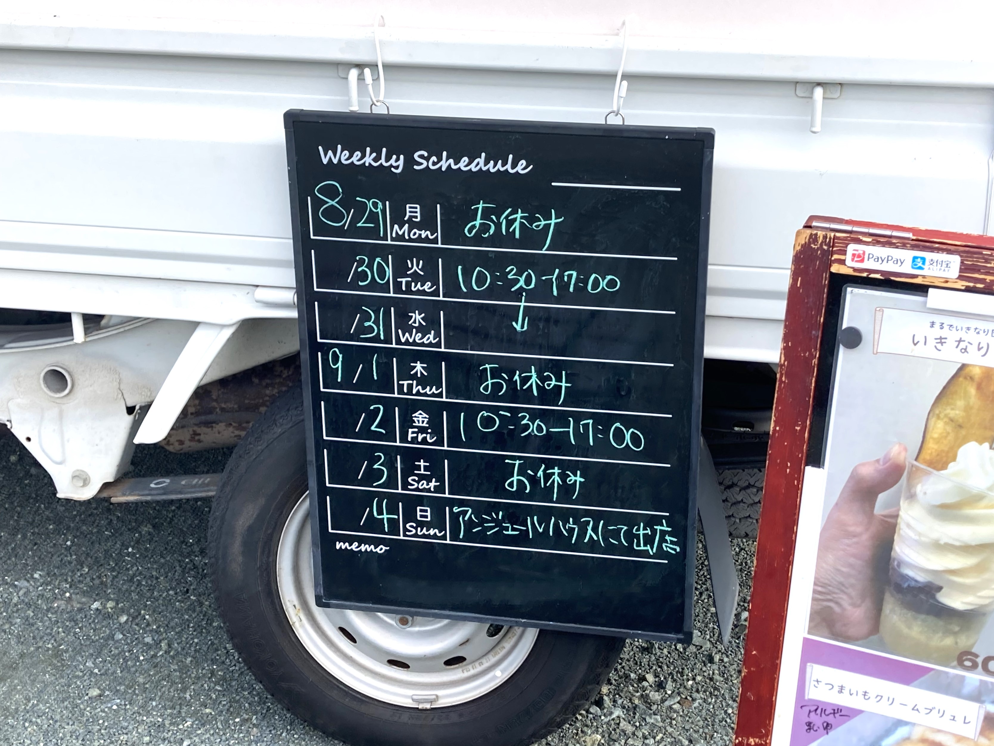 この駐車場の一角にキッチンカーが停まっていました。大津町のさつまいもを使ったスイーツを販売されています。