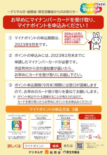 「今年2月末までにマインバーカード申請をされた方のマイナポイント申請期限が今月9月までなんですよ」