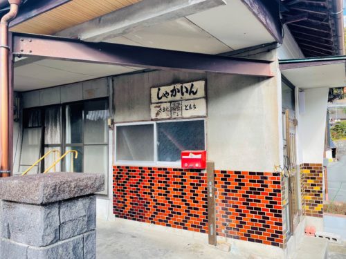 - 当時の駅名標も存在しており、駅舎跡に建っている民家の軒先に掲げている。