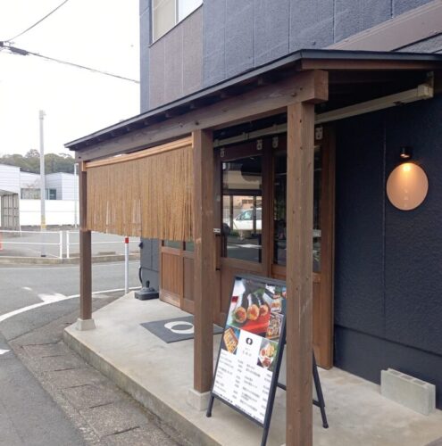 入口はお向かいの美容院を目印にするとわかりやすい。
