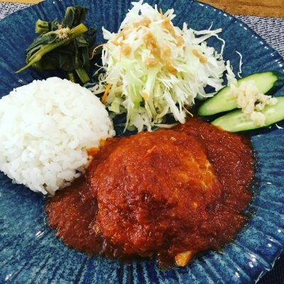 こちらは煮込みハンバーグのプレートです。こちらもソースが魅力的で本当に美味しそう。