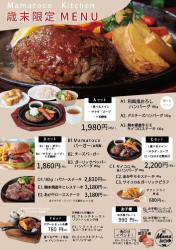また、歳末大売出し期間は、レストランの方は特別メニューでの営業となります。